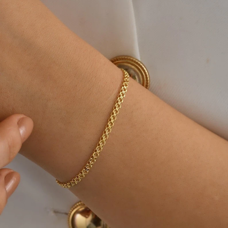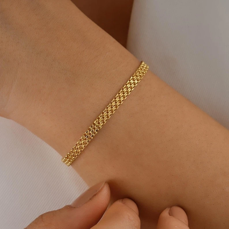 Gold-Plated Bismarck Knit Bracelet – Dainty Custom Birthday Gift