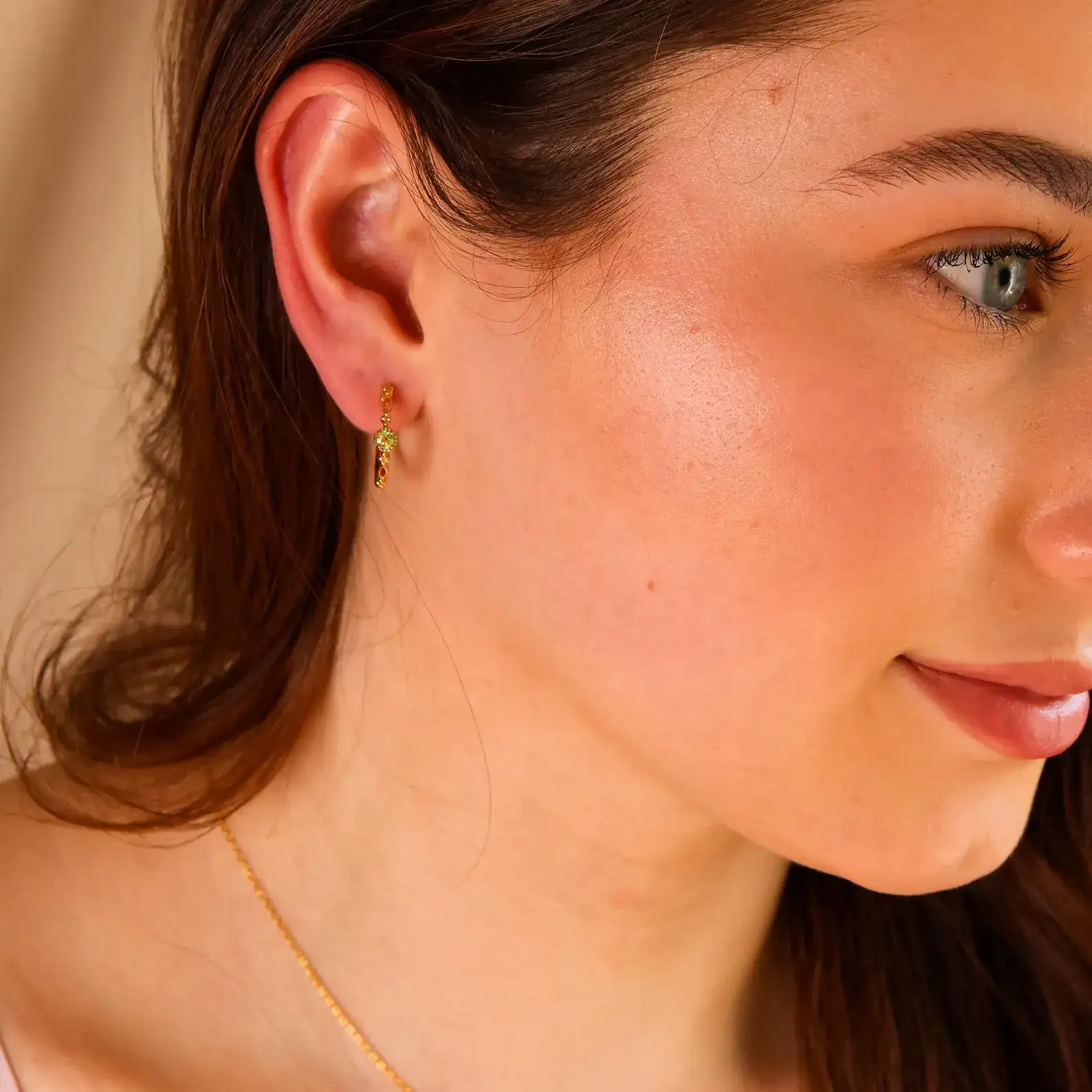 Pretty Vintage Peridot Gold Plated Earrings with Hoops